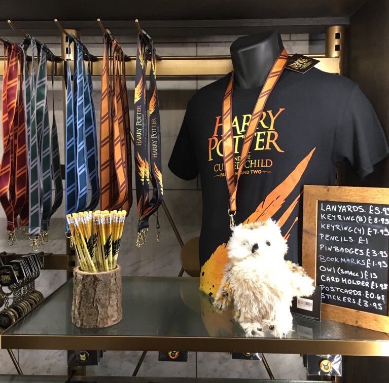 O Teatro – O Palace Theatre em Londres tem uma capacidade relativamente grande com quatro andares principais: a platéia, camarote simples, camarote grande e o balcão. Eu estava no balcão, a uns 20 metros de altura do palco, e a vista é muito restrita. Eu recomendo muito, se você está planejando comprar ingressos, que gaste algumas libras a mais em lugares na platéia (the stalls) ou nos camarotes (dress circle; grande circle), para que assim você aproveite melhor o show. No teatro, há também produtos de Cursed Child disponíveis para compra (veja fotos).